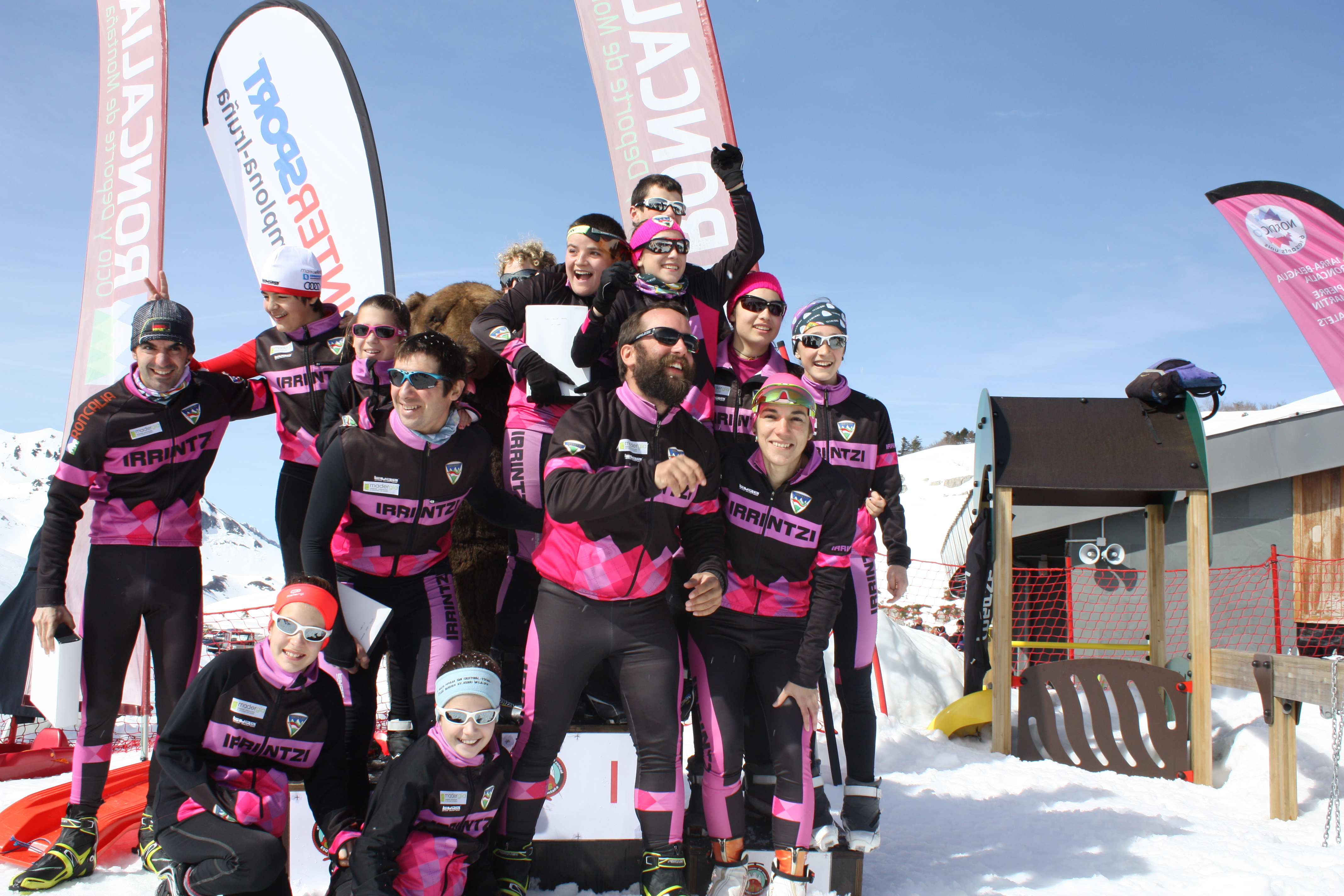 Entre los txikis también los resultados y el papel de los Irrintzi´s fue genial. Se notan las horas de entrenamiento y sesiones de técnica y los corredores disfrutan de las carreras ylo más importante llegan sonriendo a meta. Iker Fortes e Irati Cuadrado se llevaron los Campeonatos de Navarra en los dos estilos, Iranzu Guelbenzu este año no se durmió en la contra reloj y terminó segunda ambas pruebas. Jokin Azkona peleó como siempre para subirse al pódium en estilo clásico, y se quedó con la miel en los labios en la prueba de patinador. Lo mismo le ocurrió a Maider, que empieza a correr con más confianza y menos nervios y a punto estuvo de acompañar a sus compañeras en el pódium de estilo clásico. Ane Azkona demostró que sabe concentrarse mucho en las carreras individuales y sobre todo en patinador cuajó una gran carrera. Lander sigue creciendo y sobre todo disfrutando cada carrera, haciéndose un hueco entre sus compañeros de categoría. Hodei peleó ambas pruebas por centésimas, termianndo con muy buenas sensaciones sus primeros campeonatos de Navarra.