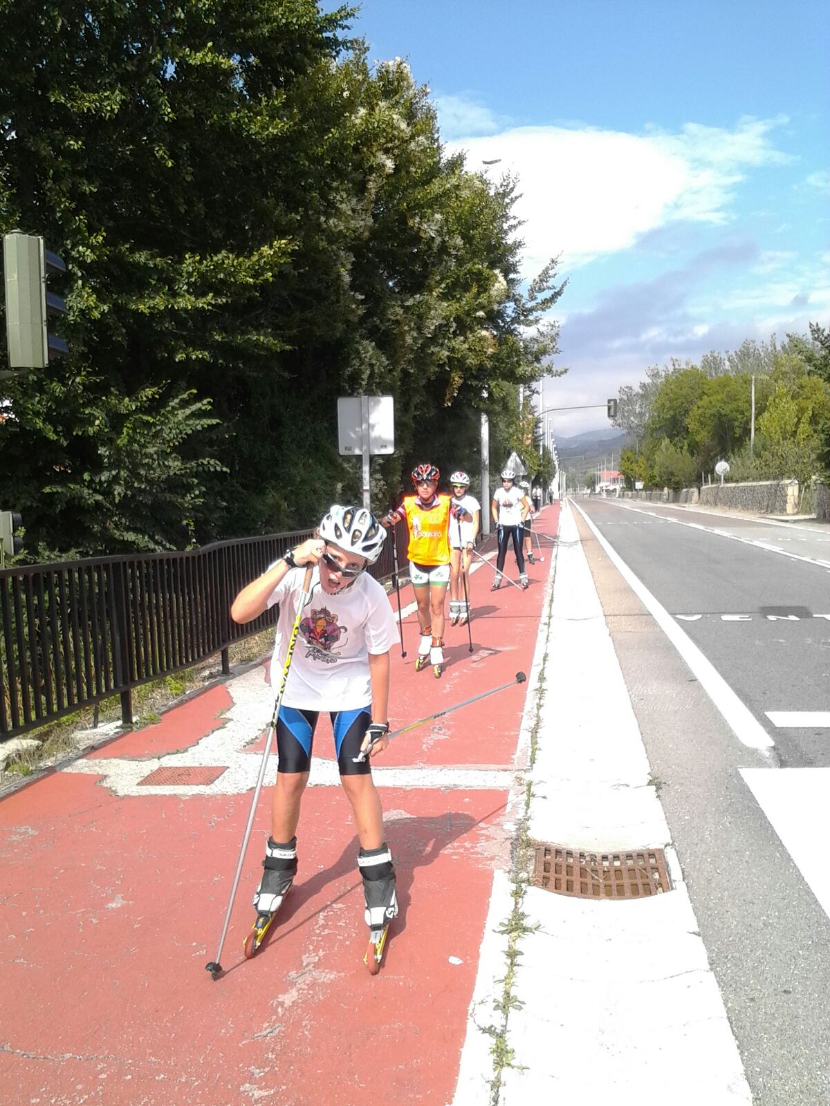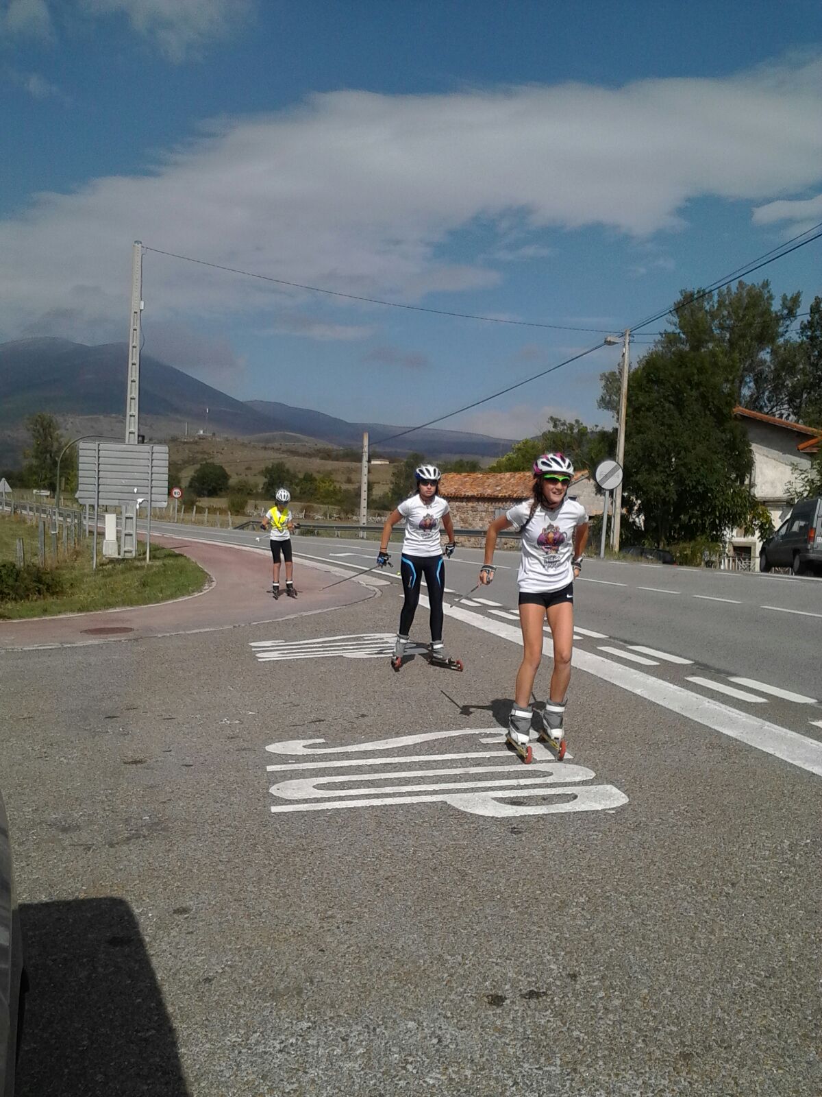IMG_2082Un año más los Campeonatos de España de Rollerski de Reinosa han supuesto el pistoletazo de salida a la última parte de la pretemporada antes de que lleguen las nieves. 6 Irrintziskis en dos furgonetas rumbo a la localidad cántabra que todos los años acoge estos campeonatos. El viaje nos permitió conocer parajes de Burgos desconocidos antes de llegar a media mañana a Reinosa. Sin tiempo para respirar, los y las corredoras de Irrintzi se ponían las botas para realizar un corto entrenamiento, reconociendo el recorrido de la prueba.