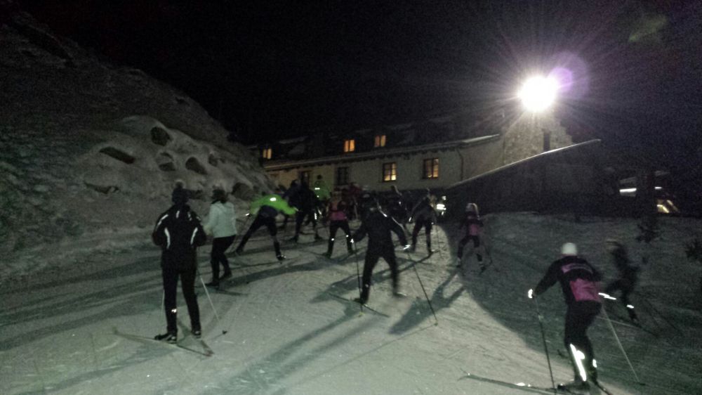 Irrintzi esquía bajo la luna