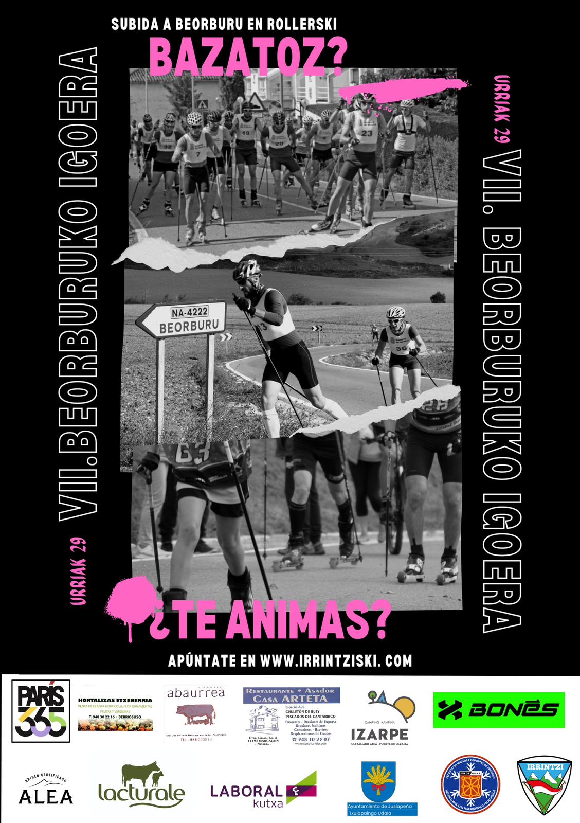 Ya tenemos el cartel de la 7ª edición de la Subida a Beorburu que organiza Irrintzi Ski. Una edición especial, que en la víspera contará con el primer Campeonato vasconavarro de rollerski sprint en Pamplona. Por lo que puede ser una gran ocasión para contar con más y mejores participantes en la clásica subida a Beorburu.